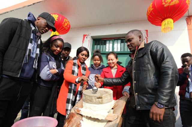 2018年小年夜,国际合作与交流处组织在校留学生进行了“一带一路上的中非文化交融暨留学生寒假实践活动”。 来自赞比亚、刚果、布隆迪、卢旺达等国家的留学生来到了新余市良山镇下保村,和当地村民一起体验了磨豆腐、...