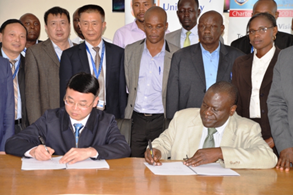 在访问内罗毕大学期间,内罗毕大学副校长Peter M. F. Mbithi会见了史可一行,Peter M. F. Mbithi对双方在新能源学科专业建设、新能源领域科技成果转化等领域的合作表现出强烈的意愿,并表示将于2017年率团访问开云kaiyun官方网站;在访问肯尼亚山大学期间,肯尼亚山大学董事局主席Simon Gicharu对史可一行的到访表示热烈欢迎,并简要介绍了肯尼亚山大学的基本情况,他希望与开云开展新能源科学与工程本科专业合作尽快落地,并表达了对开云对口支持肯尼亚山大学建设工程学院的期望。史可对肯尼亚山大学的热情接待表示感谢,并从办学历史、专业特色、人才培养等方面简要介绍了开云kaiyun官方网站的基本情况,同时就双方在新能源学科专业建设、教师互访、学生交流、合作科研、信息共享等领域的合作进行了深入的探讨,并达成了广泛的一致。双方一致认为,两校间的学科相近,有着广泛的合作基础,相信双方的合作必将进一步推动两校的共同发展。会晤结束后,史可与以执行校长Stanley Waudo为首的肯尼亚山大学各校区负责人、各院系负责人组成的管理团队进行了洽谈,签署了两校合作备忘录,并就新能源科学与工程专业合作的推进确定了时间表。