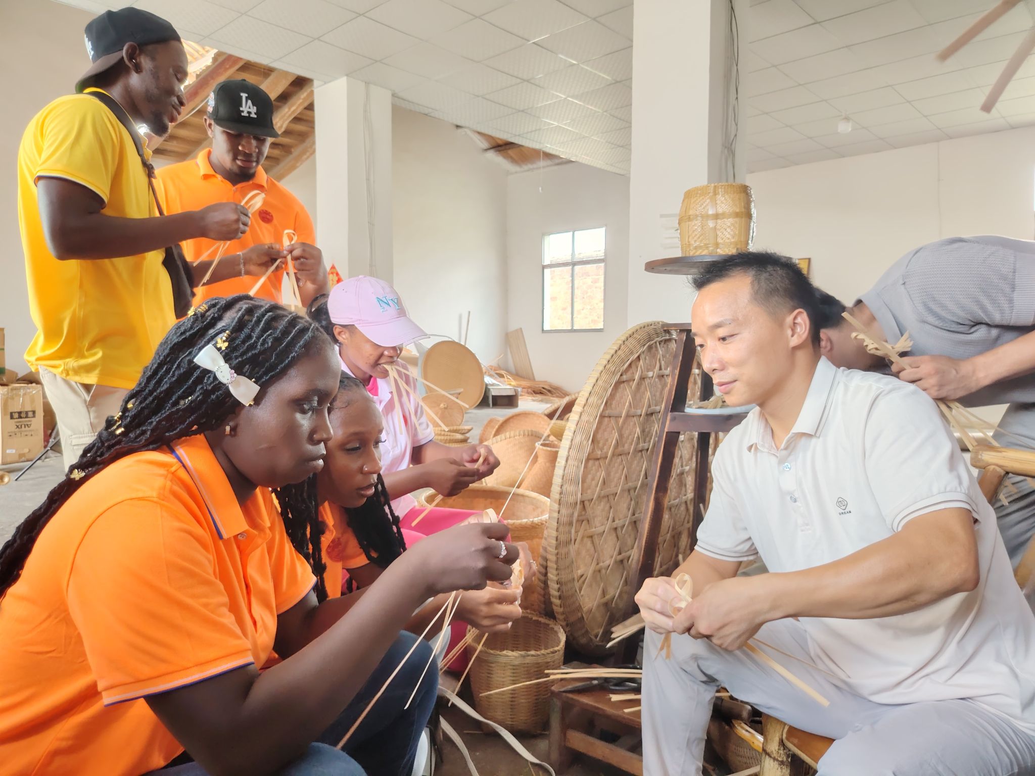 在分宜洞村乡,留学生们体验了竹编非遗技艺。他们观看了匠人用竹丝编织篮篓、器皿等物品的过程,尝试编织了竹鸟等,初步掌握了挑、压、穿、插等编织手法。大家对竹材通过传统技艺转化为兼具实用与审美价值的艺术品表示惊叹;在双林夏布文化村,留学生们走进夏布刺绣人文艺术馆,了解了夏布的制作工艺金和特点,领略千年传统与现代艺术的交汇;在进防里村,留学生们了解了该村明清时期的科举历史。在祠堂内,仔细听取“进士及第”匾额的介绍,感受中华文化的深厚底蕴。在村外,与老师一同环抱千年古樟,触摸树皮纹路。在万年古桥畔,观赏青苔覆盖的石拱及周边景致,了解当地历史故事;在钤山镇金鸡布村的茶山,留学生们被层层叠叠的茶树构成的美丽生态景观所吸引,他们品尝了分宜黄茶,品味茶韵流香,感受文化浸润。