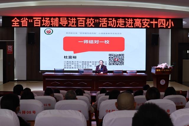 近日,开云心理健康教育中心杜富裕和志愿服务学生一行来到高安市第十四小学开展对口帮扶活动。该校教师、家长和学生代表等共计120余人参加活动。