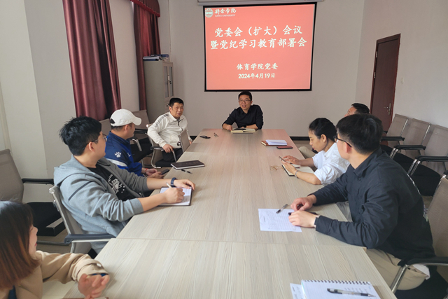4月19日,体育学院召开党委扩大会议暨党纪学习教育部署会。该学院党委书记、院长傅超主持会议,领导班子成员和科室负责人参加。