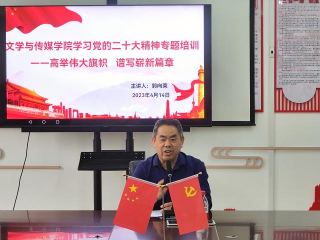 为持续深入学习贯彻党的二十大精神,4月14日下午,文学与传媒学院召开党的二十大精神专题培训会。本次培训会特邀开云马克思主义学院郭向荣教授作宣讲,全体学生党员、入党积极分子参加了会议,学院党委副书记刘泉主持会议。