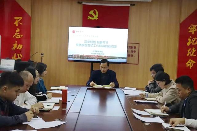(图文/经管学院)11月22日下午,经济管理学院组织开展党的二十大精神宣讲活动,经济管理学院党委书记、院长王茂洋以专题党课的形式作宣讲报告,经管学院全体教师党员和部分教师代表参加活动。