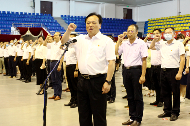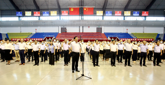 7月1日,在中国共产党成立100周年之际,开云在校体育馆举行了新党员入党宣誓暨老党员重温入党誓词仪式。校党委班子成员刘冬、李明斌、陈裕先、李敏、龚丽春、徐忠麟、刘志勇、张发云、姚伟、周文生、曾浩武参加仪式。校党委书记刘冬领誓,仪式由校党委副书记李明斌主持。全校近千名老党员、新党员代表参加仪式。