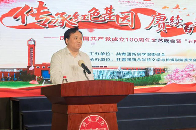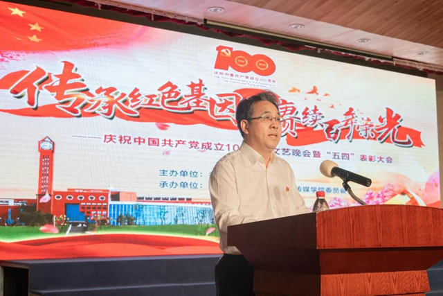 4月29日,“传承红色基因 赓续百年荣光”庆祝中国共产党成立100周年文艺晚会暨“五四”表彰大会在图书馆学术报告厅举行。校党委书记刘冬,党委副书记李明斌,党委委员、副校长龚丽春,党委委员、组织部部长姚伟、宣传部部长周文生出席活动,各二级学院负责人、分管共青团工作领导、团委负责人,新老团员代表,共计500余人参与本次活动。