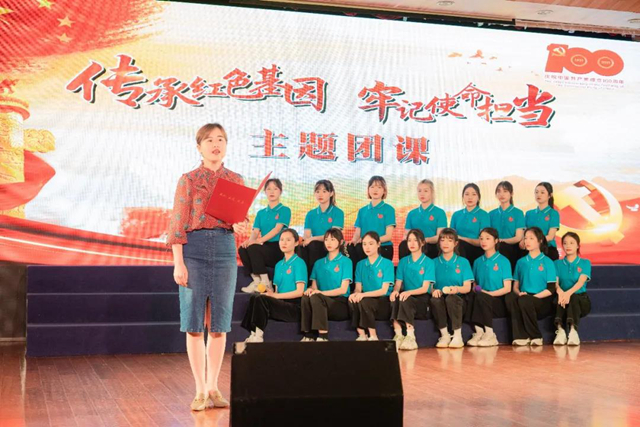 晚会分为百年征程铸辉煌、红色基因守初心、时代青年担使命三个篇章。合唱《四渡赤水出奇兵》、朗诵《可爱的中国》激情昂扬;原创情景剧《她的名字叫“红”》、《不求名贵——钢浇铁铸邱明贵》,讲述革命先烈的红色故事,展示优秀共产党员坚贞不屈的精神;三位青年写了《致陈觉同志一封信》、《新时代,我们在一起——给赵一曼女士的一封信》、《给樊贞子学姐的一封信》三封信,通过跨越时空的回信缅怀革命先烈,追思先辈事迹,感悟初心使命;主题团课《传承红色基因 牢记使命担当》告诉我们青年兴则国家兴,青年强则国家强。青年一代有理想、有志气、有担当,国家就有前途,民族就有希望。