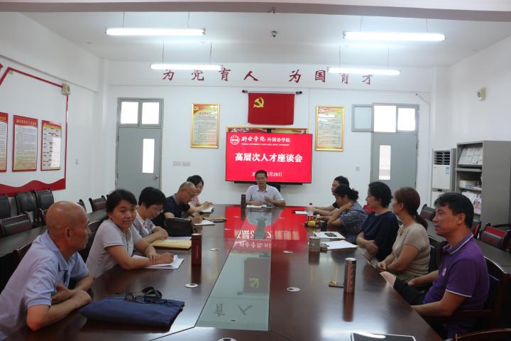 为更好地推进党史学习教育,落实“我为师生办实事”,全面了解外国语学院高层次人才的意见和建议,充分调动学院高层次人才工作的积极性和主动性,进一步增强学院高层次人才管理的针对性和实效性,6月29日,外国语学院在党员活动室开展“我为师生办实事” 暨“院长有约”第三期座谈会。座谈会由外国语学院党委书记、院长刘华东主持,外国语学院副书记胡小刚、副院长张莉和所有高层次人才参加。