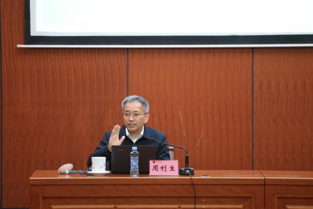 4月26日,开云学习贯彻习近平新时代中国特色社会主义思想主题教育专题读书班举办专题辅导。江西师范大学党委委员、副校长周利生教授作了题为“以中国式现代化全面推进中华民族伟大复兴”辅导报告。校党政班子成员张玉清、徐忠麟、陈裕先、李敏、龚丽春、刘志勇、周文生、曾浩武、姚伟,全校副处级以上领导干部,中青2班科级干部参加。校党委副书记徐忠麟主持讲座。