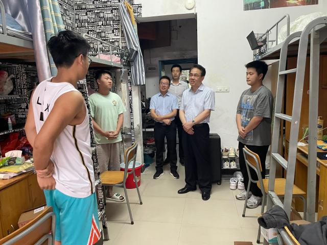 (图/机电工程学院 严智敏 文/机电工程学院 龚琦)浓浓关怀意,难舍师生情。为进一步扎实推进学习贯彻主题教育“学思想、强党性、重实践、建新功”总体要求,深入了解毕业生当前就业情况,及时掌握并解决学生的“操心事”“烦心事”,6月6日上午,校党委书记李明斌走访机电工程学院毕业生宿舍,为毕业生送去叮嘱、关怀和祝福。机电工程学院负责人及部分毕业班班主任陪同走访。