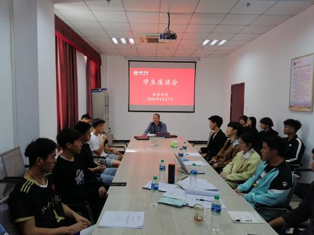 为深入开展学习贯彻习近平新时代中国特色社会主义思想主题教育活动,进一步落实学校为师生办实事要求。4月27日,体育学院召开了学生座谈会。会议由学院党委副书记梁明主持,学生科负责人、辅导员及30余学生代表参加会议。